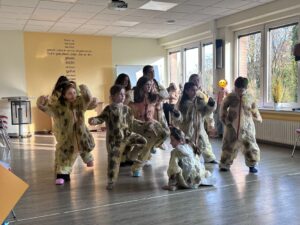 Für 36 Kinder der Bolandschule ging es vom 18.03.-20.03. gemeinsam mit vier Lehrerinnen auf die Chorfreizeit nach Horn Bad Meinberg. Dort wurde fleißig das Musical „Tuishi pamoja“ geprobt, das zum Ende des Schuljahres in der Aula der Schule aufgeführt wird. Die ersten Kostüme der Giraffen und Zebras konnten dort auch schon anprobiert werden.