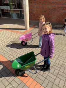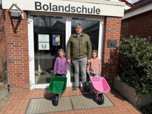 Passend zum Frühlingsanfang spendete die Firma Kari Farming zwei Schubkarren für unsere Randstunden- und OGGS Kinder. Überreicht wurden sie durch den Geschäftsführer Frank Meierzuherde und die Zwillinge Anneke und Fritzi.